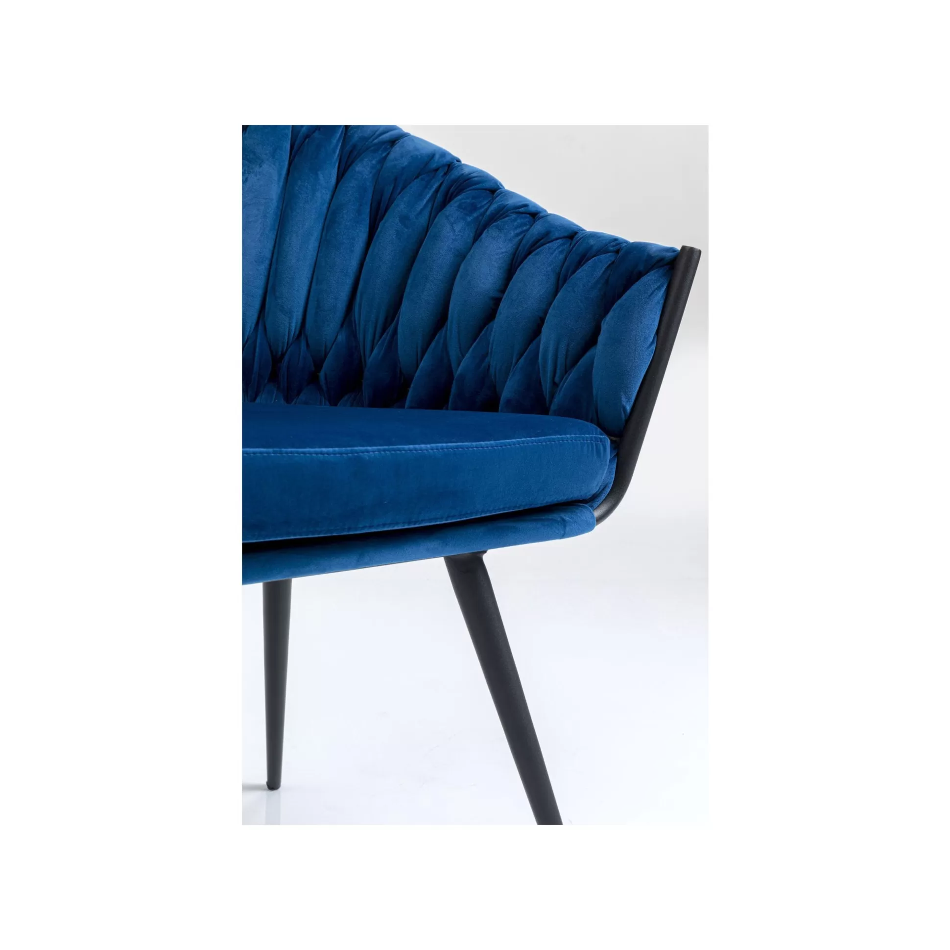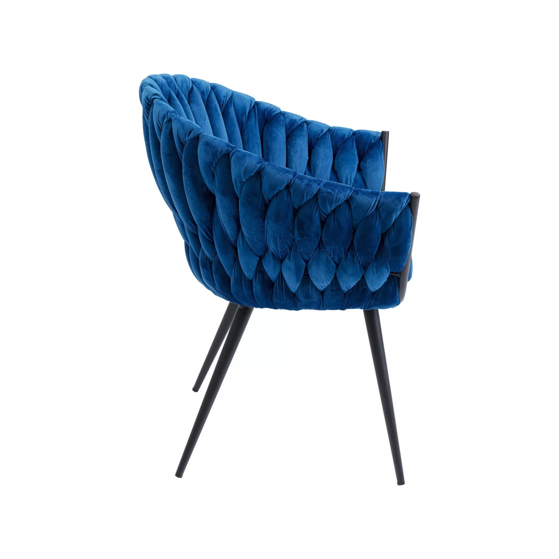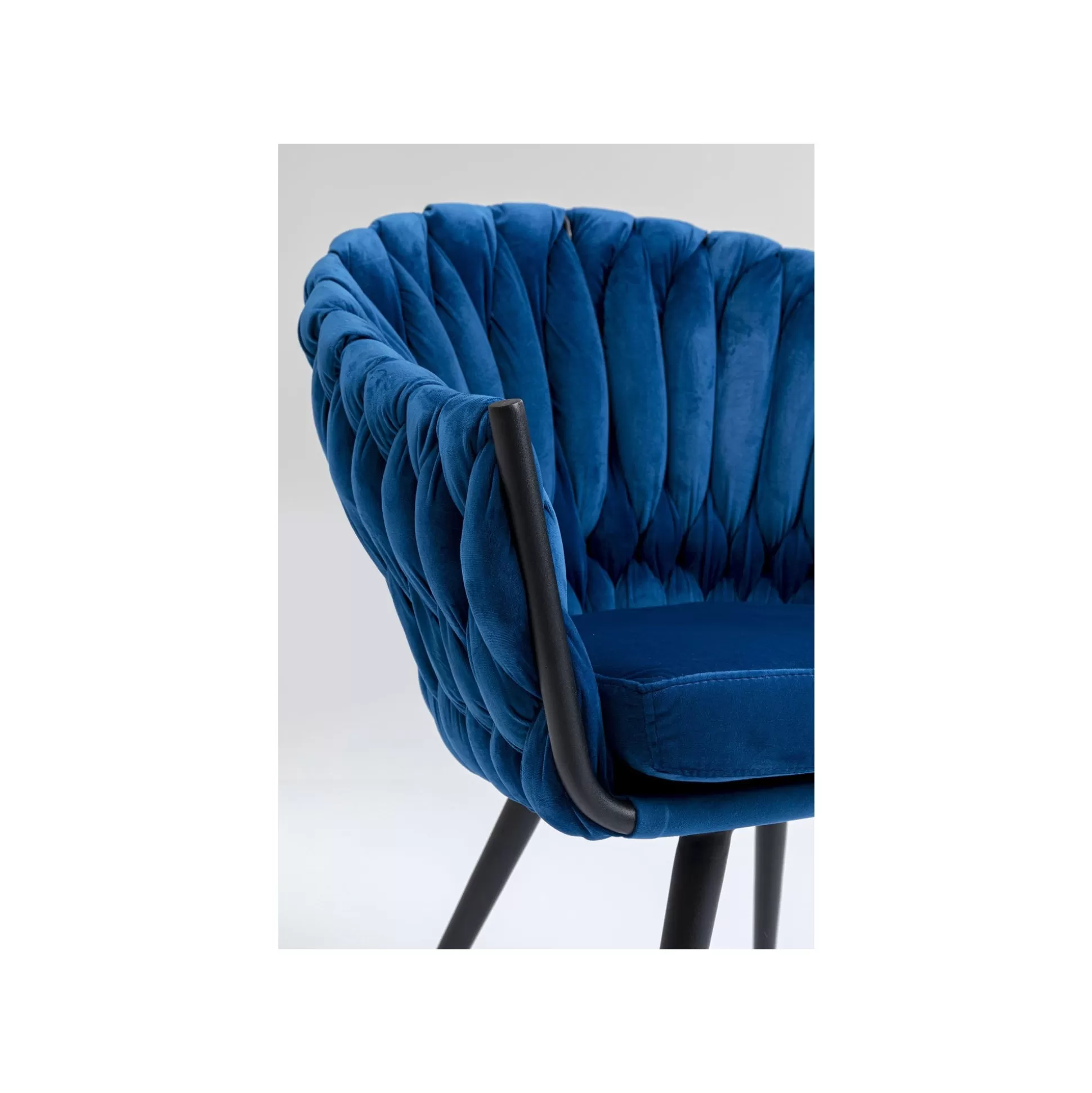 Cette chaise en velours saura vous séduire par son style rétro tendance relevé par un piètement en acier minimaliste. Son dossier incurvé et ses accoudoirs sont mis en valeur par des bandes de tissu à l’aspect tressé qui apportent du relief. Chic et élégante, cette chaise trouve sa place dans un intérieur raffiné. Vous pouvez aussi l’accorder avec le modèle rose, marron ou bleu-vert.