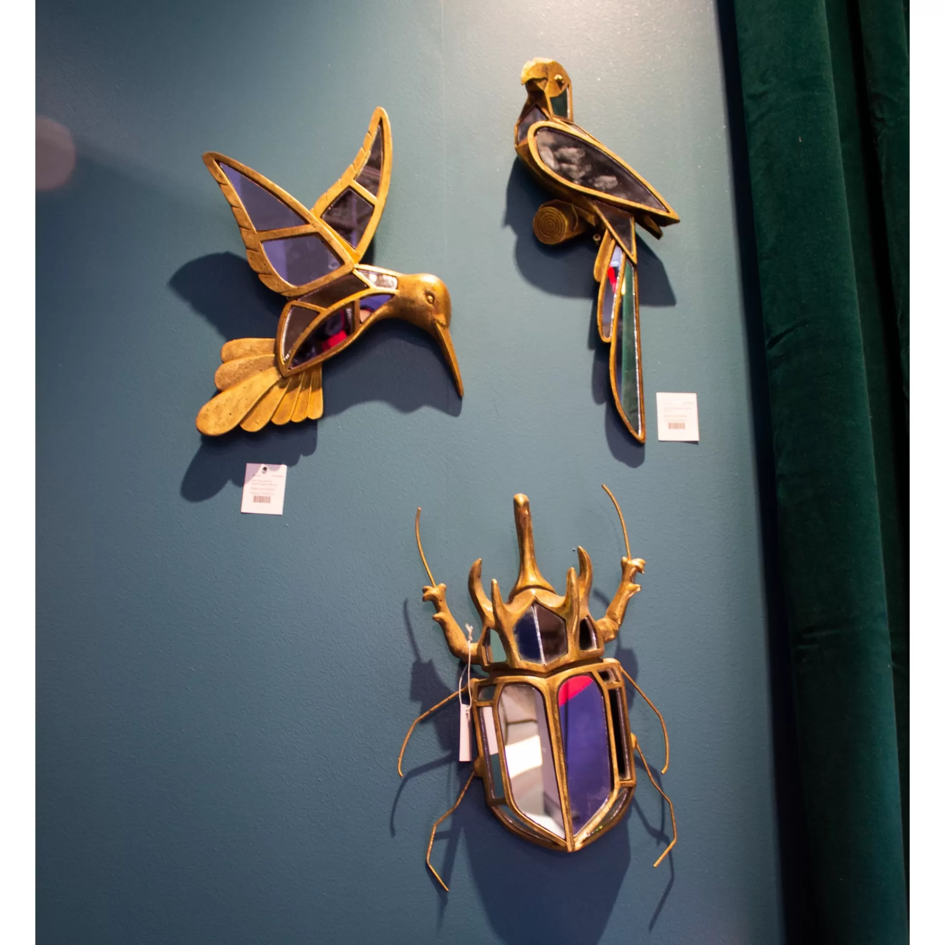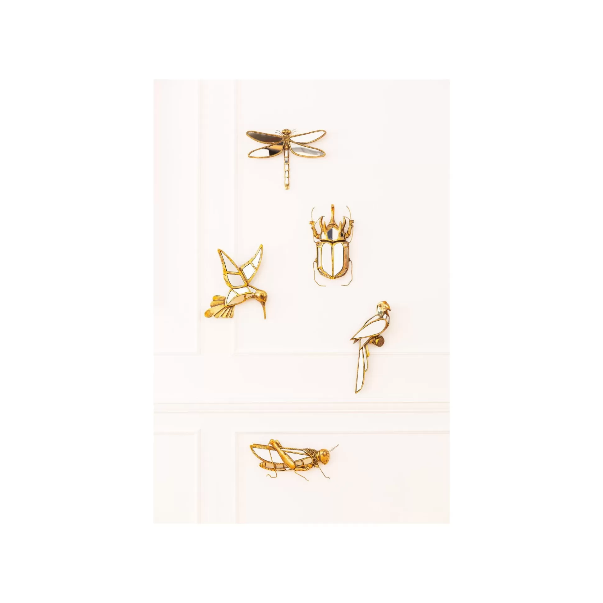 Cette gamme élégante de décos murales miroir en forme de différents animaux s’intégrera parfaitement sur les murs de votre salon, de votre entrée ou encore de votre chambre. Leur couleur dorée et leurs parties faites de miroir apporteront une touche lumineuse et élégante à votre intérieur. Découvrez les différents animaux disponibles : colibri, libellule, perroquet, scarabée et sauterelle. Certains modèles sont disponibles en plusieurs tailles.
