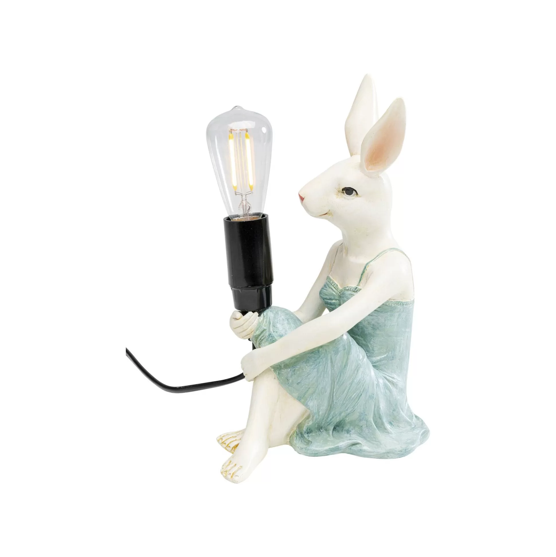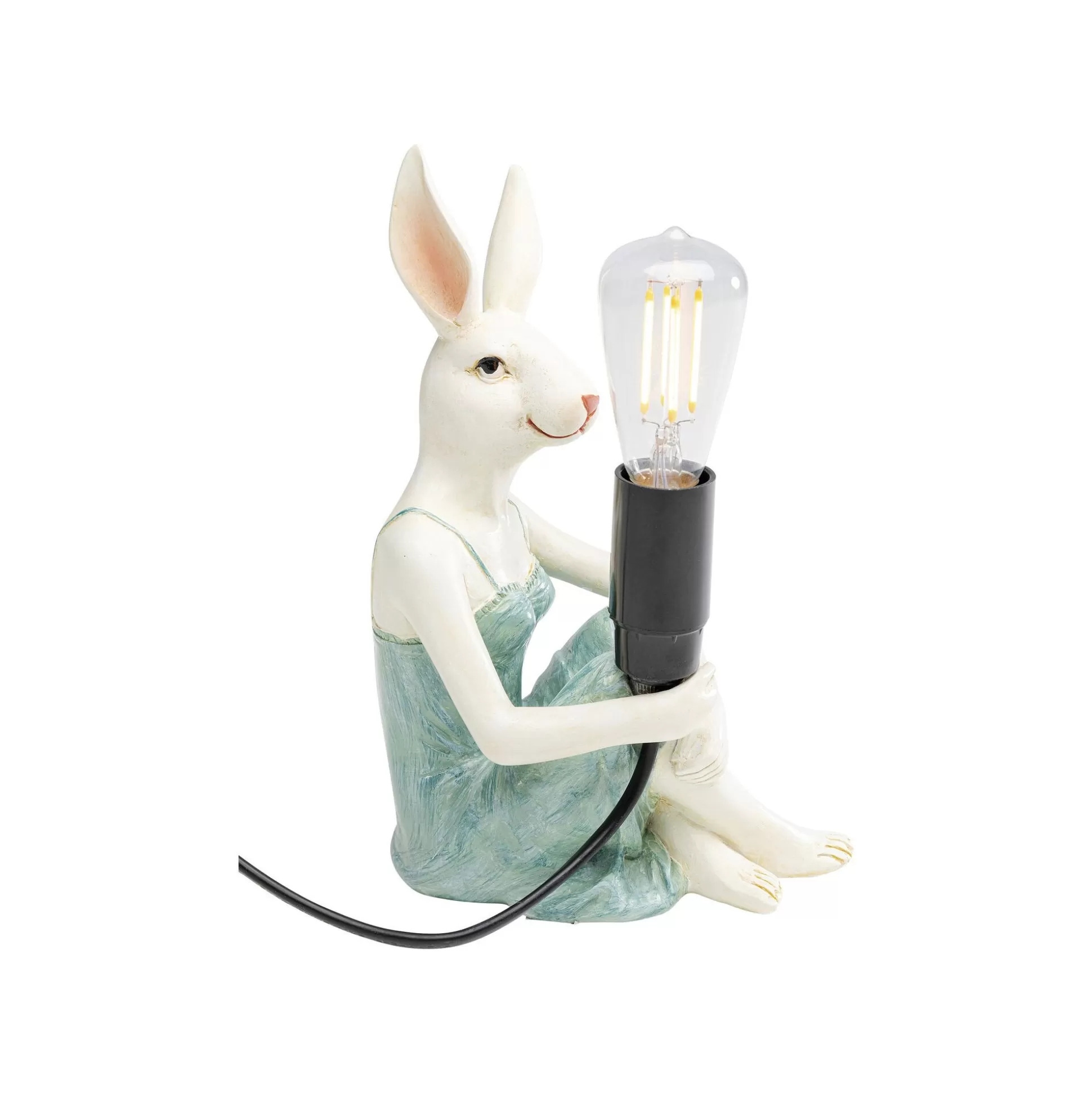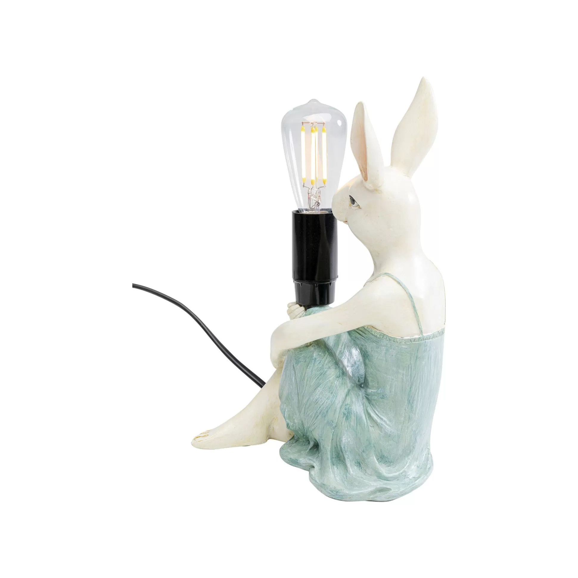 Cette lampe représente une lapine humanisée, vêtue d’une robe verte, qui tient l’ampoule contre elle pour veiller sur les nuits des petits comme des grands.